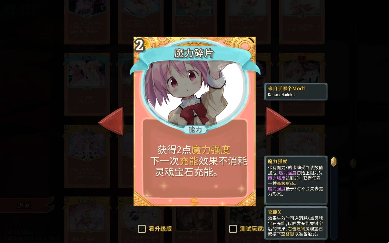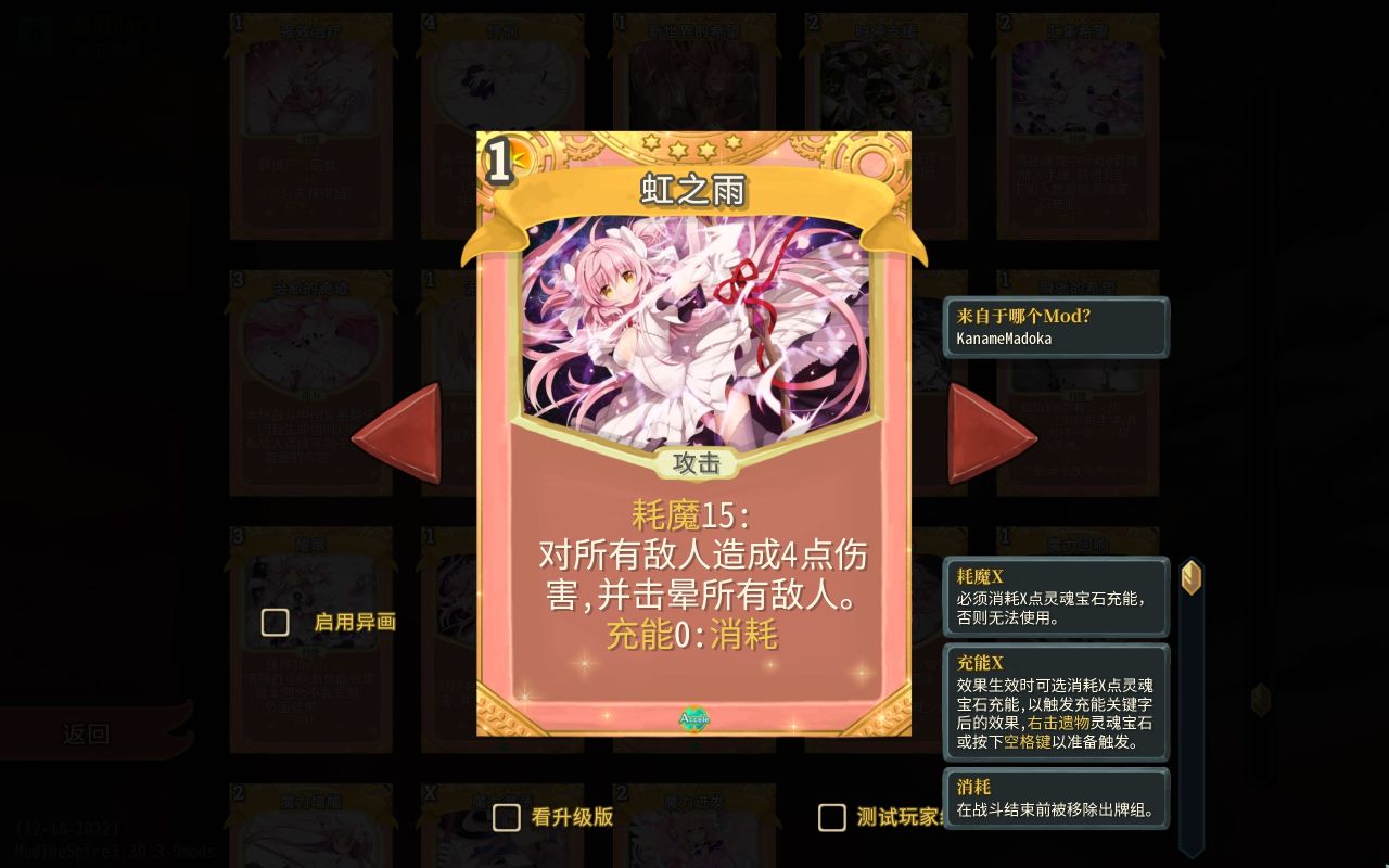 (如圖,感謝異畫庫作者antileaf,這個作者也有一個MOD即將出爐,是來自於東方的愛麗絲,可以期待一下。不出意外的話,下期就是他的MOD的推薦哦)MOD強度較高上手簡單,但是也有強於心臟的BOSS可供挑戰,所以不擔心殺穿尖塔太過無聊。這個模組還和曉美焰mod有聯動,可以一起打開嘗試一下
