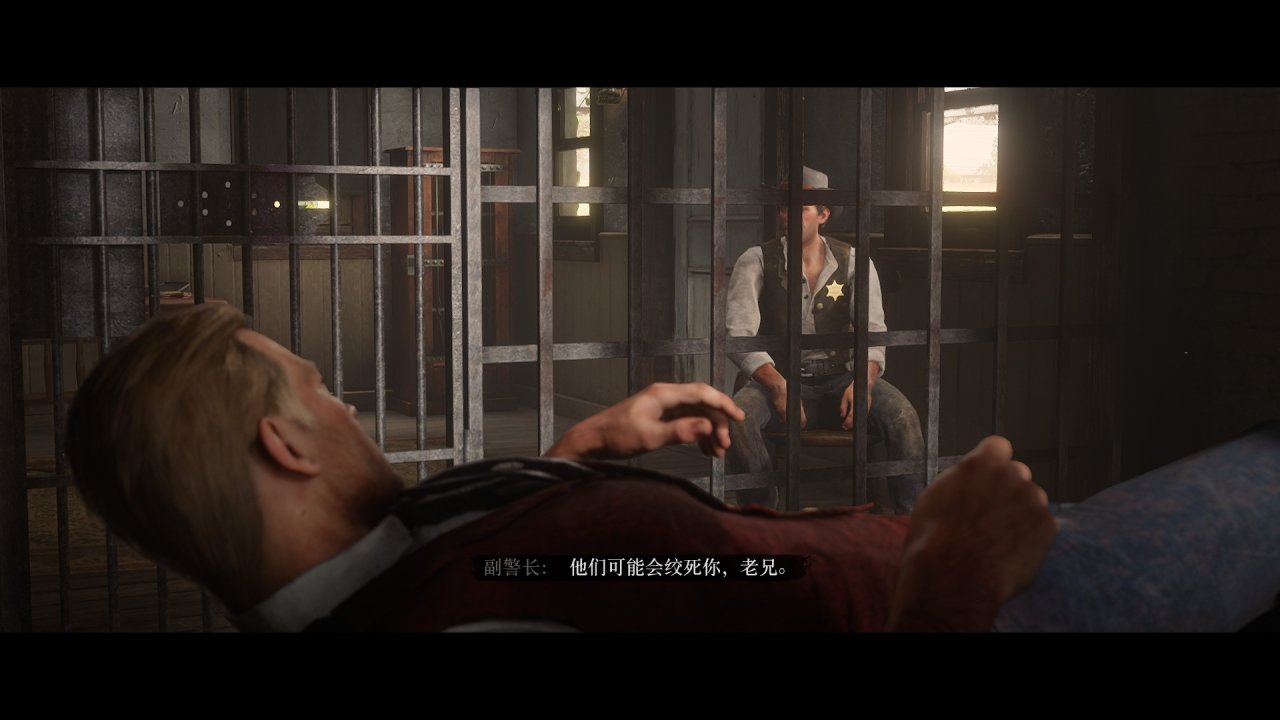 情况2触发劫狱: 帮派成员直接炸开牢房,把亚瑟劫走。这种情况会触发通缉,需要和帮派成员先摆脱通缉,然后重新主动坐牢,触发正常情况清。