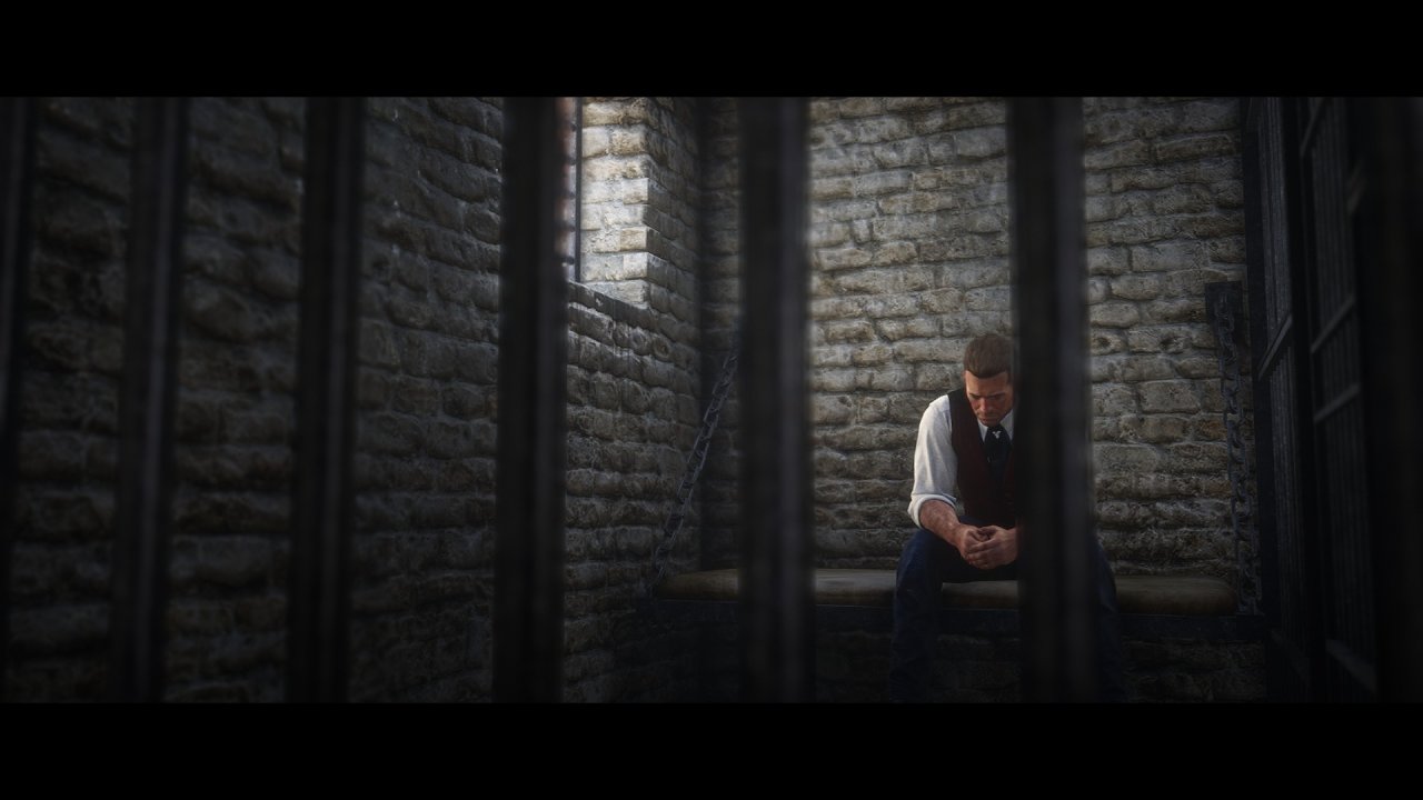 情况1触发营救: 帮派成员会带着酒过来,灌醉狱卒,营救亚瑟。这种情况不需要进行任何操作,一段动画后出牢房,悬赏会清除并且不扣钱。