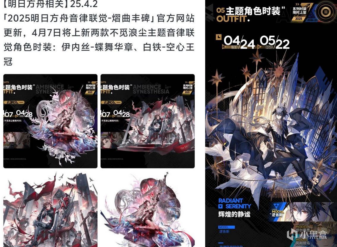 除此之外,明日方舟官網放出音律聯覺新皮膚後緊急撤回,音律聯覺是方舟週年慶同期舉辦的音樂會,遊戲內也會對應銷售當期音樂會出場的部分角色的對應時裝,一般每期出三個,在這個前提下,今日官網忽然放出了兩款去年音樂會的新皮膚,中間沒有任何預告,之後玩家發現問題後再上官網查看後發現已經找不到了,已經被撤回。
