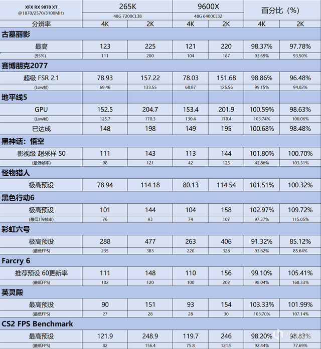 結果涵蓋2K和4K的對應結果,更貼合實際的遊戲體驗環境。
