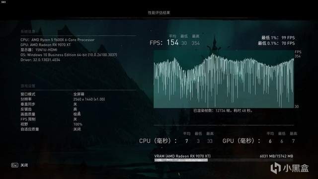 9600X 24x2 6400CL32 + RX 9070 XT@1870/2570/3100MHz