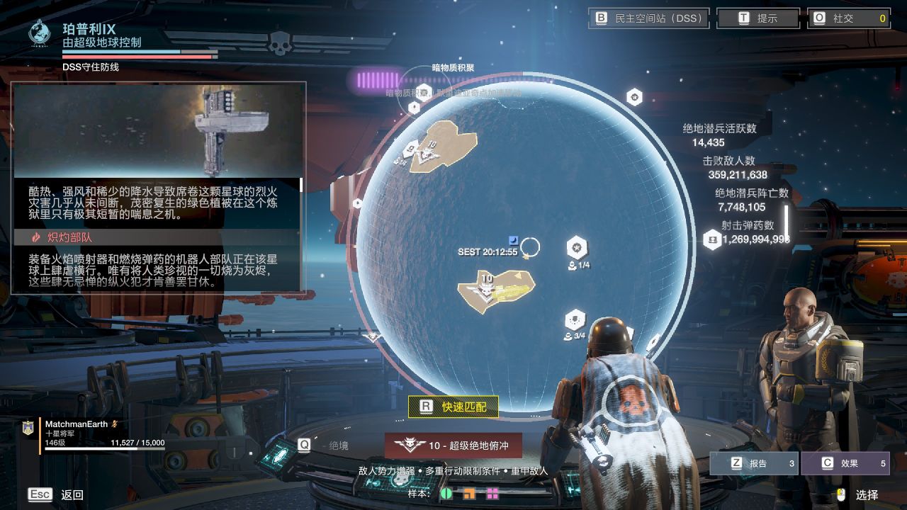 將鼠標放在爆發戰役的星球上,可以查看星球的具體情況,如活躍潛兵數、星球環境等。