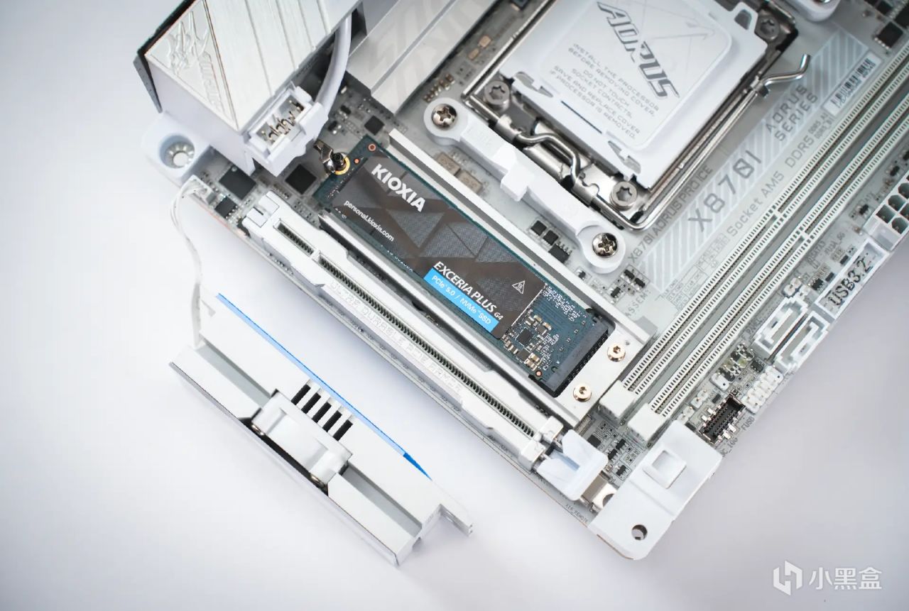 因爲技嘉X870I迷你雕正面所搭載的M.2插槽爲PCIe 5.0 * 4協議,所以在固態選擇方面我也是直接使用了鎧俠EXCERIA PLUS G4。該固態算是市面上最有性價比的PCIe 5.0固態,使用的是鎧俠原廠第八代BiCS 3D堆疊TLC閃存顆粒,內部採用了多達218層堆疊,順序讀取速度可以達到10000MB/s。