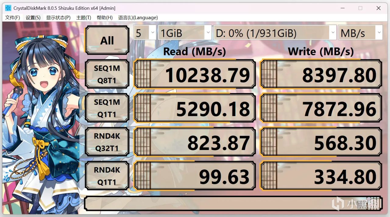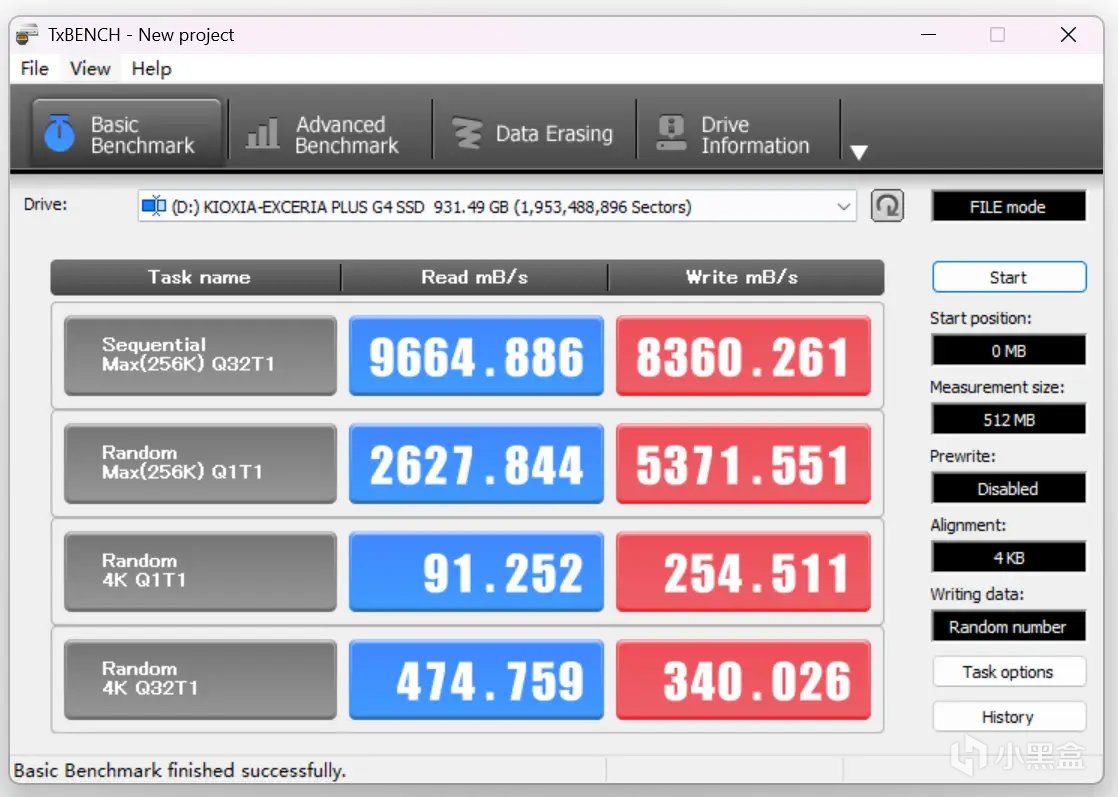 硬盤方面,得益於技嘉X870I迷你雕所搭載的PCIe 5.0協議的M.2插槽,通過CrystalDiskMark和TxBENCH的實測,鎧俠EXCERIA PLUS G4的速度基本上都與官方宣傳的一樣,可以達到10000MB/s以上的順序讀取速度,而順序寫入速度也達到了8300MB/s以上