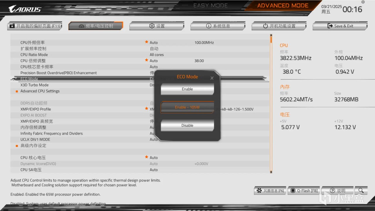對於9600X\9700X這樣的處理器,可以在ECO Mode中開啓105W功能,也可以提升CPU的性能。