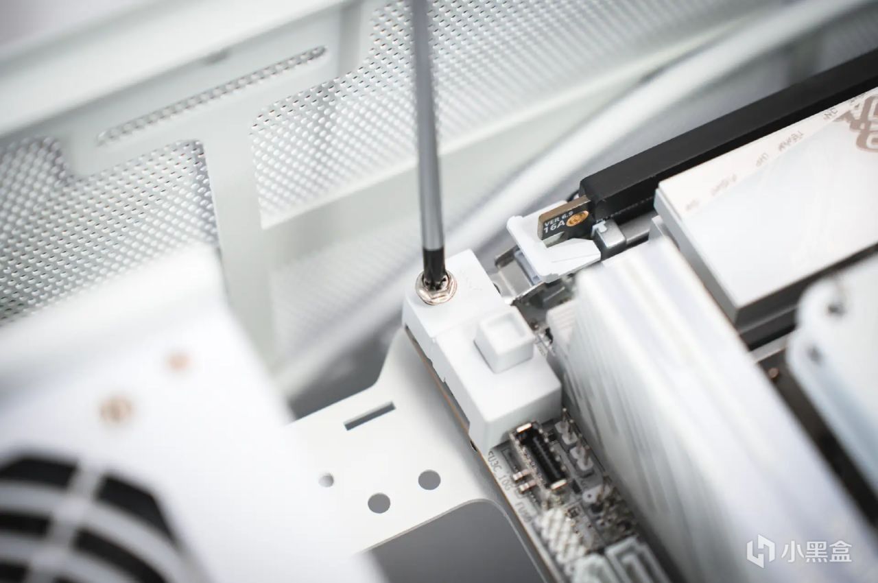並且技嘉X870I迷你雕因爲顯卡快拆支架的設計,該孔位固定螺絲需要使用主板附帶配件中的螺絲。