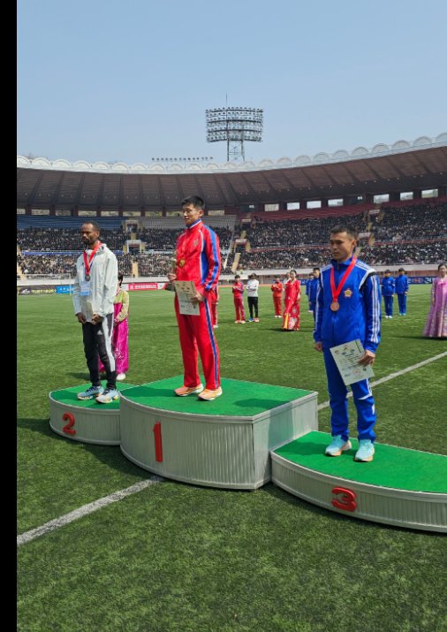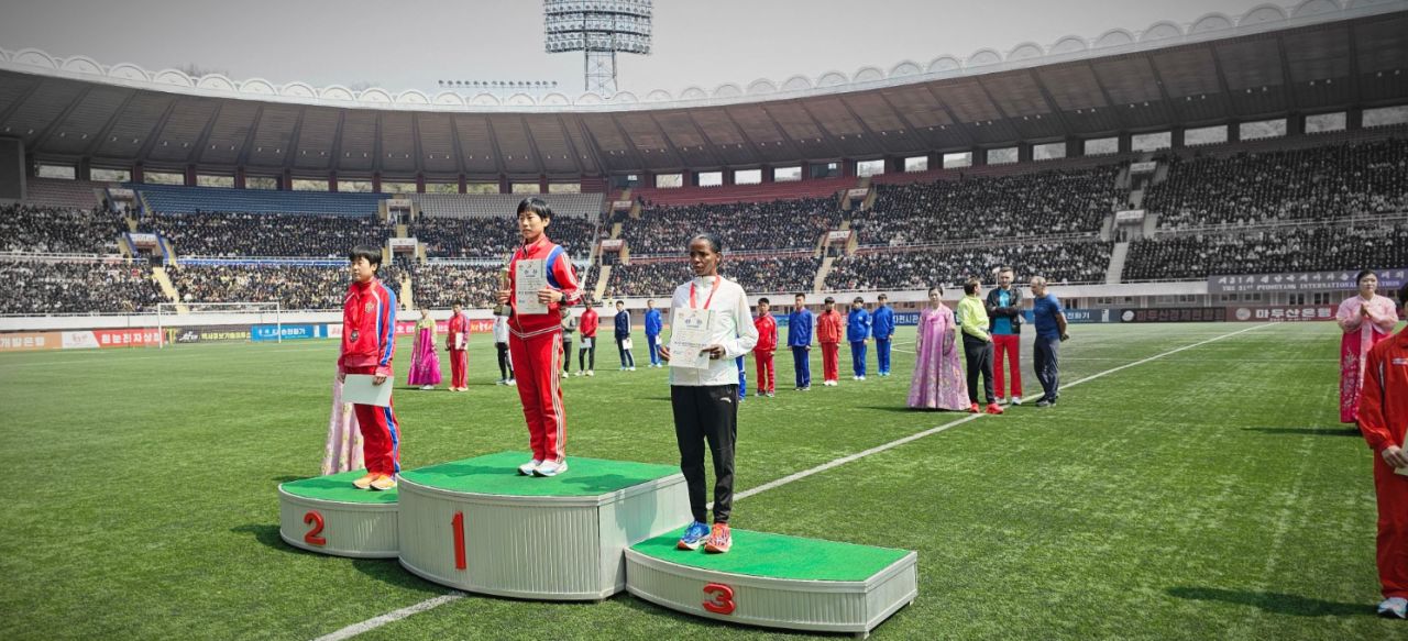今年的赛事全程组别的冠军仍是朝鲜运动员:男子冠军朴金东以2小时12分11秒率先回到起/终点金日成体育场。