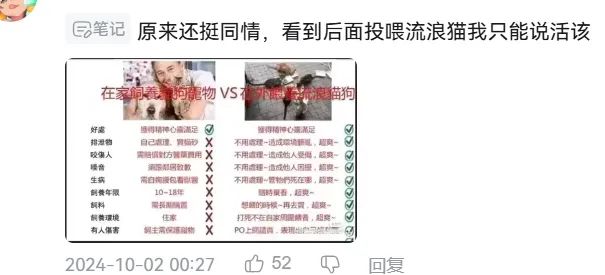 這種主要是比較反感博主投餵流浪貓,因爲這樣會破壞生態環境,只是自以爲是的僞善(後面博主表示,投餵的基本都抓去絕育了)