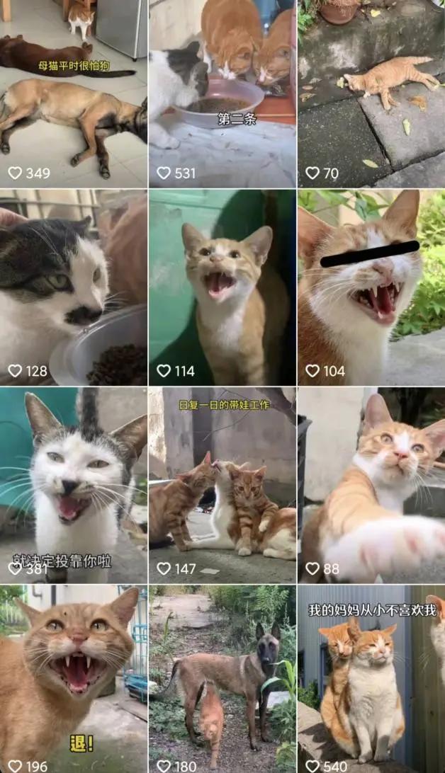 這位博主是個典型的愛貓人士(無褒貶含義),平時所發的主要內容也都是救助一些自家附近的流浪貓和狗。
