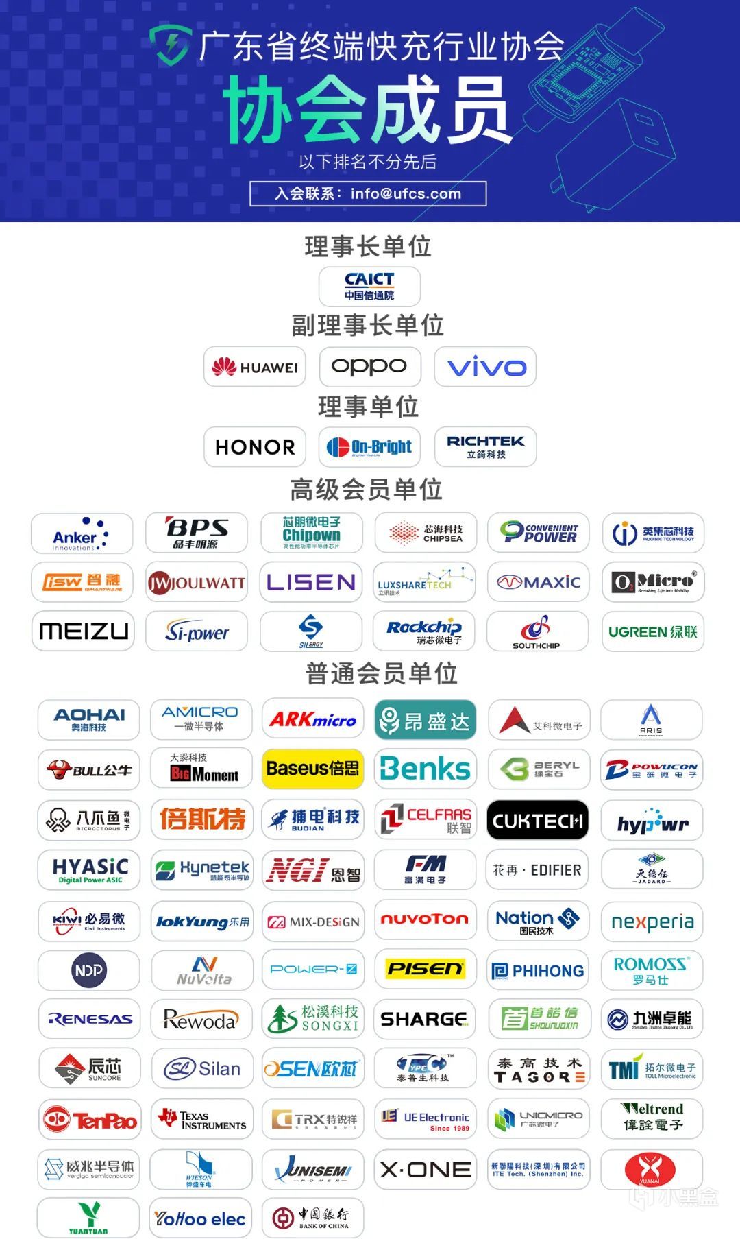 UFCS是由信通院、華爲、OPPO、vivo、小米(已退出)、榮耀牽頭,聯合昂寶、立錡等多家終端、芯片企業和產業界夥伴共同努力完成的新一代融合快充協議,旨在解決目前市面上快充標準複雜多變、互不兼容的問題,對於全球節能減排、綠色低碳、可持續發展具有積極的影響。