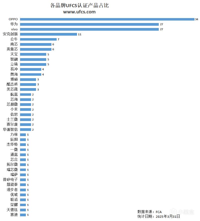 圖6 各品牌UFCS認證產品數量統計(2025年3月31日)