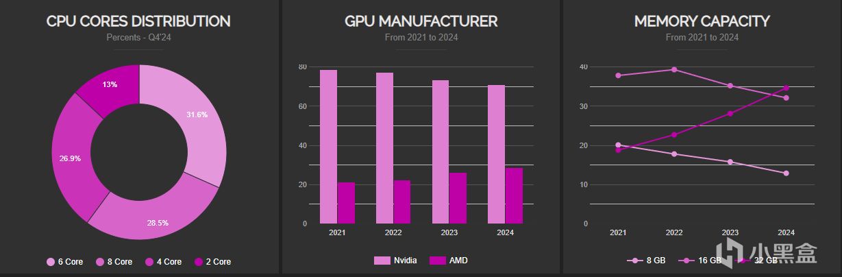 緊隨其後的是六核心 CPU(22.5%)、四核心(19.4%)和雙核心(9.6%)。換句話說,如今的裝機用戶普遍傾向於八核起步。