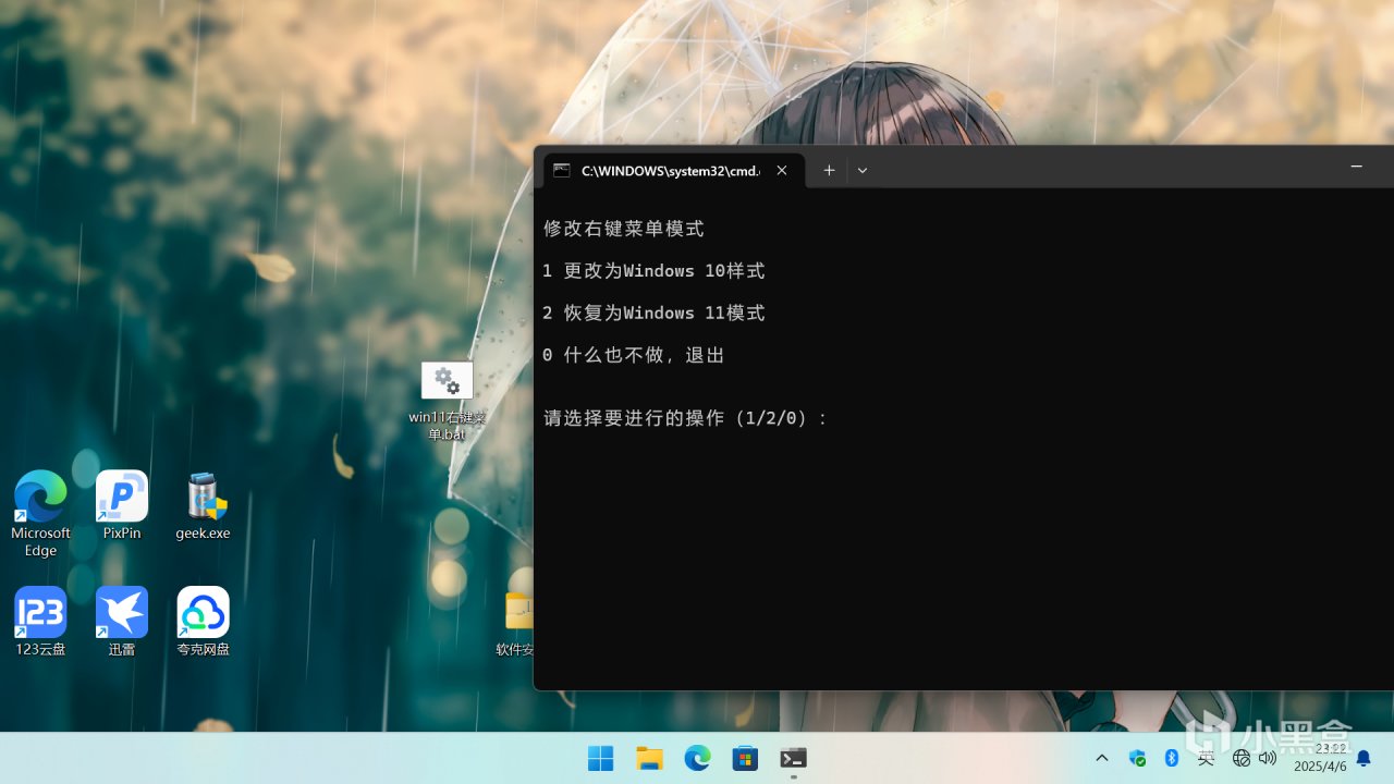 4.我們根據提示輸入數字後(1/2/0)此時文件資源管理器會進行重啓