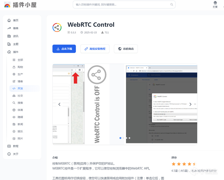 所以需要下載一個WebRTC Control插件防止自家寬帶被吸血。