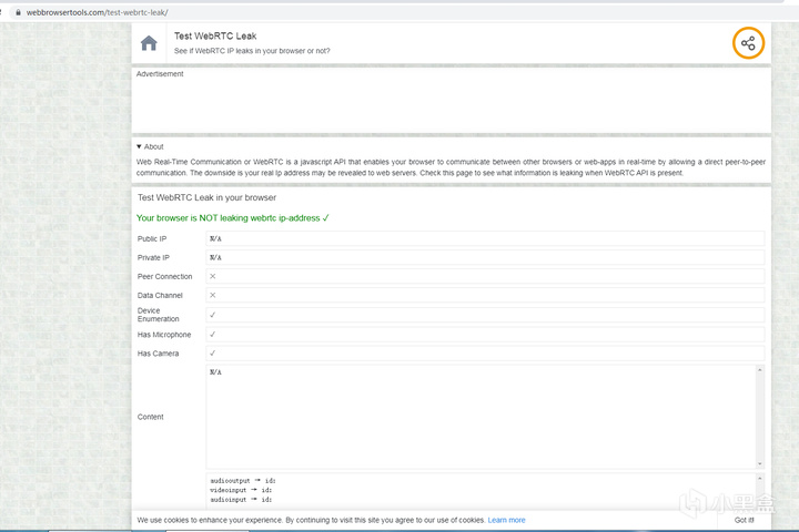 然後提示Your browser is NOT leaking webrtc ip-address就對勁
