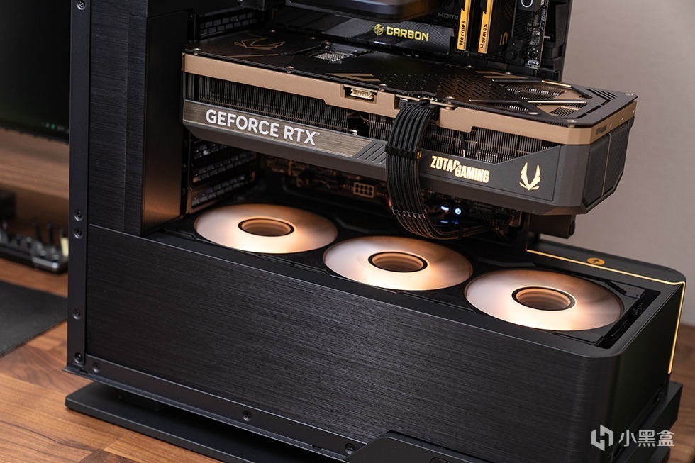 内部采用了高效的垂直气流设计,最多可安装六个120mm风扇,具体包括:顶部位置可安装三个120mm风扇,支持最大360水冷;后置位置可安装一个120mm风扇,支持最大120水冷;底部位置可安装三个120mm风扇。安装位置均作了下沉处理,在视觉上做到“隐藏”,提升仓内的整洁度。