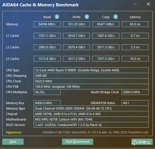 AIDA64 Cache & Memory Benchmark成绩