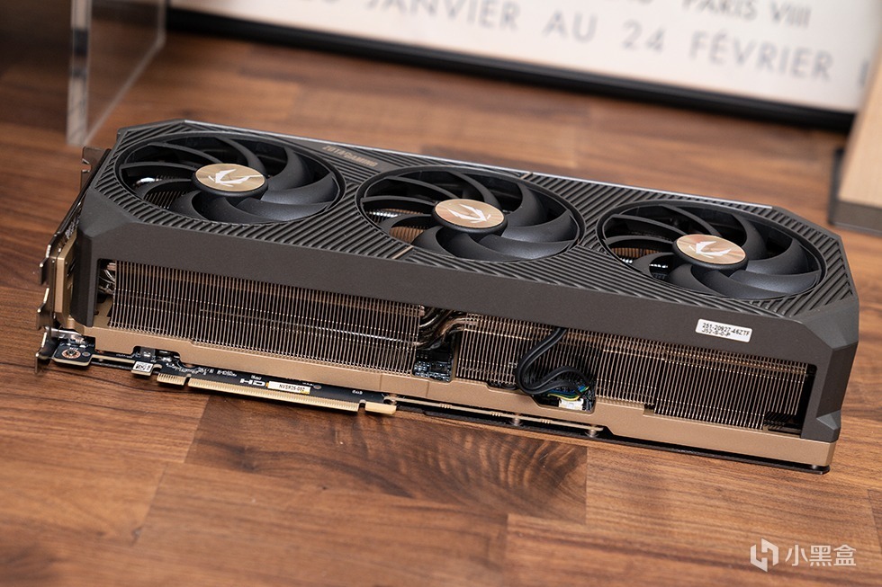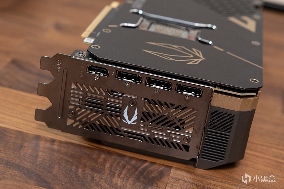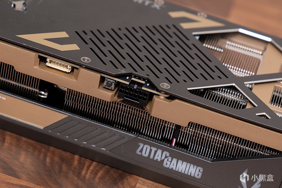 显卡的尾端同样做了栅格化的镂空处理,进一步优化气流风道,合金中框预留了三个螺丝孔位,用于安装显卡支架。