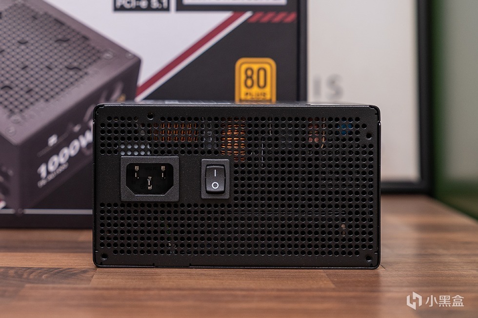 利民TR-AG1000 ATX3.1电源尾部,采用大面积蜂窝开孔,提升散热风扇的进风规模,并给到了 AC 开关,方便用户使用。
