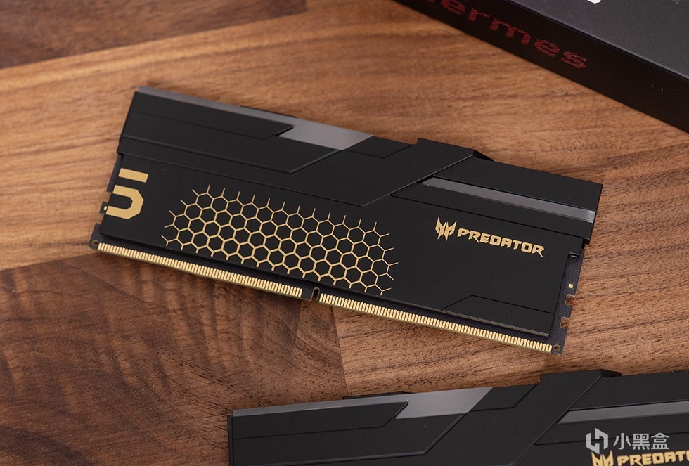 Hermes冰刃系列DDR5内存采用黑色全金属散热片,通过斜切线条堆叠和压铸工艺突出了“刃”的主题造型,表面雾面柔光处理并辅以撞色蜂窝涂装进一步提升整体的科技感。内存的散热马甲十分厚实,实测达到了1.9mm。纯黑色的10层PCB上使用了单面颗粒排布,并加上高性能的导热垫,确保内存颗粒和PMIC的热量能快速散出。