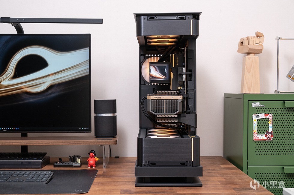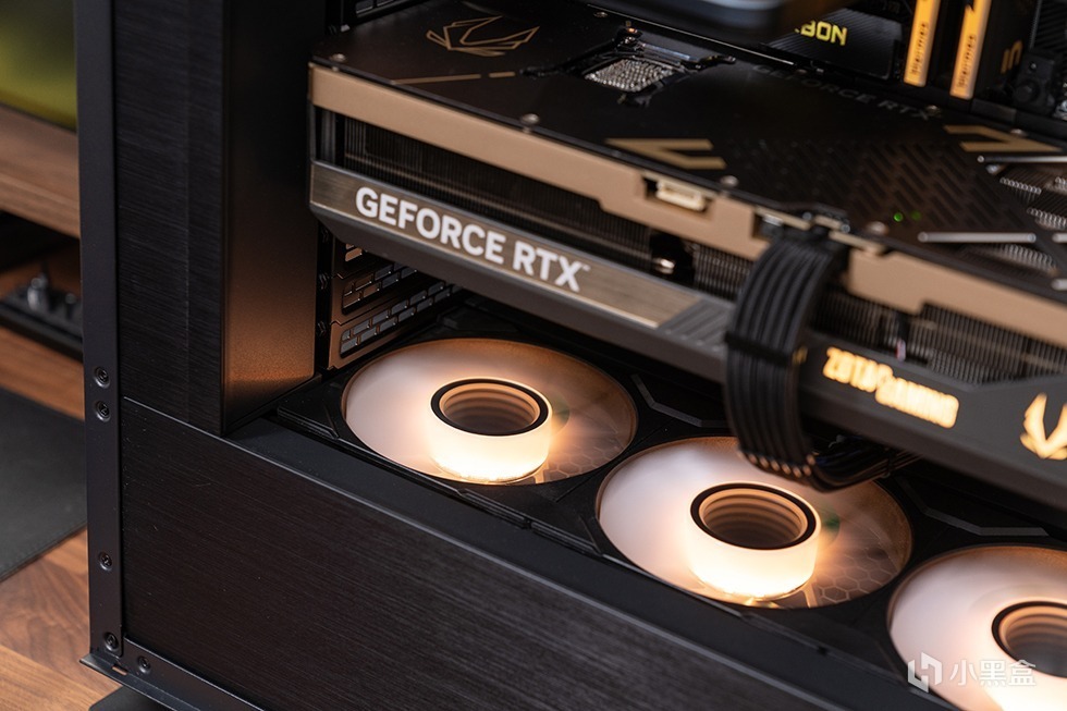机箱内部配套的风扇和水冷搭配的风扇均来自追风者二代积木风扇M25-120 G2,有黑白两色,正反转两种规格。延续了M25风扇的大风量低噪音设计理念,通过Linq6线缆形成连贯拼接。