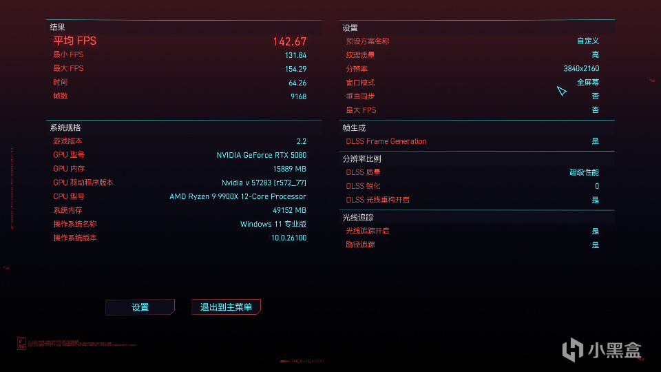 《赛博朋克2077》、《黑神话悟空》、《荒野大镖客2》三款3A大作在4K分辨率下进行测试。