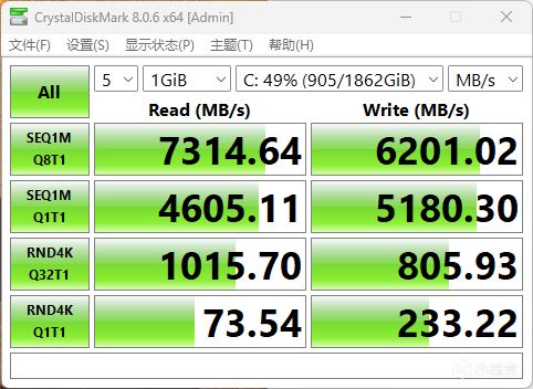 CrystalDiskMark测试成绩,佰维NV7200 2TB均达到官方标称数值。