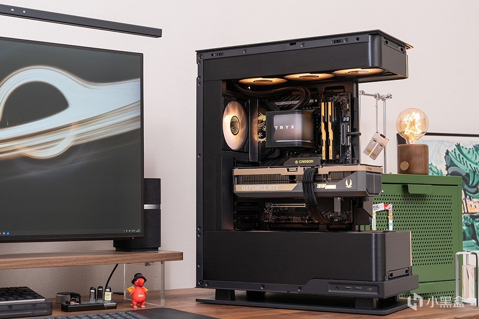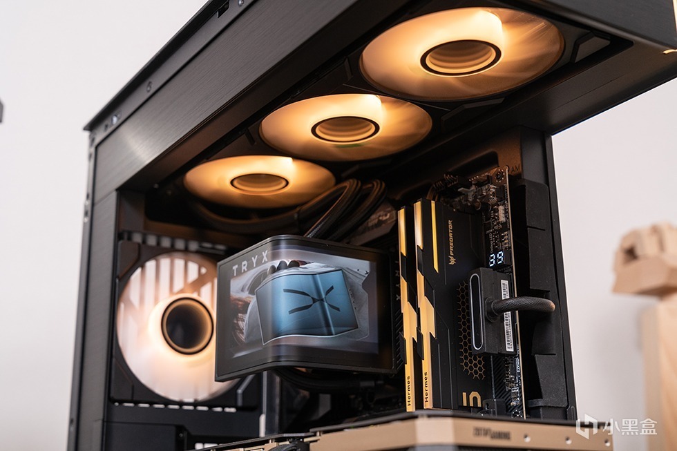 水冷来自TRYX 创氪星系 的PANORAMA展域SE 360水冷散热器,搭配的超大面积曲面冷头和追风者EVOLV X2极为般配,可谓是本次装机的不二之选。