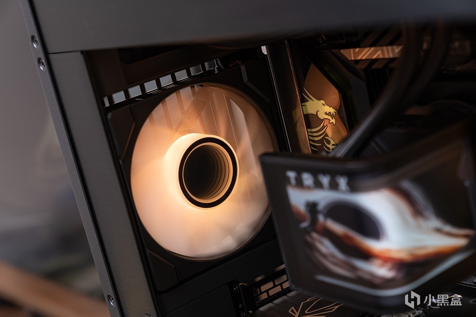 出厂预装了ROTA ARGB风扇,采用FDB轴承与9片扇叶设计,转速为500-1850RPM±10%,最大风量达66.09 CFM,静压1.8 mmH2O,即便在全速运行时,噪音也控制在27.86dB(A)。