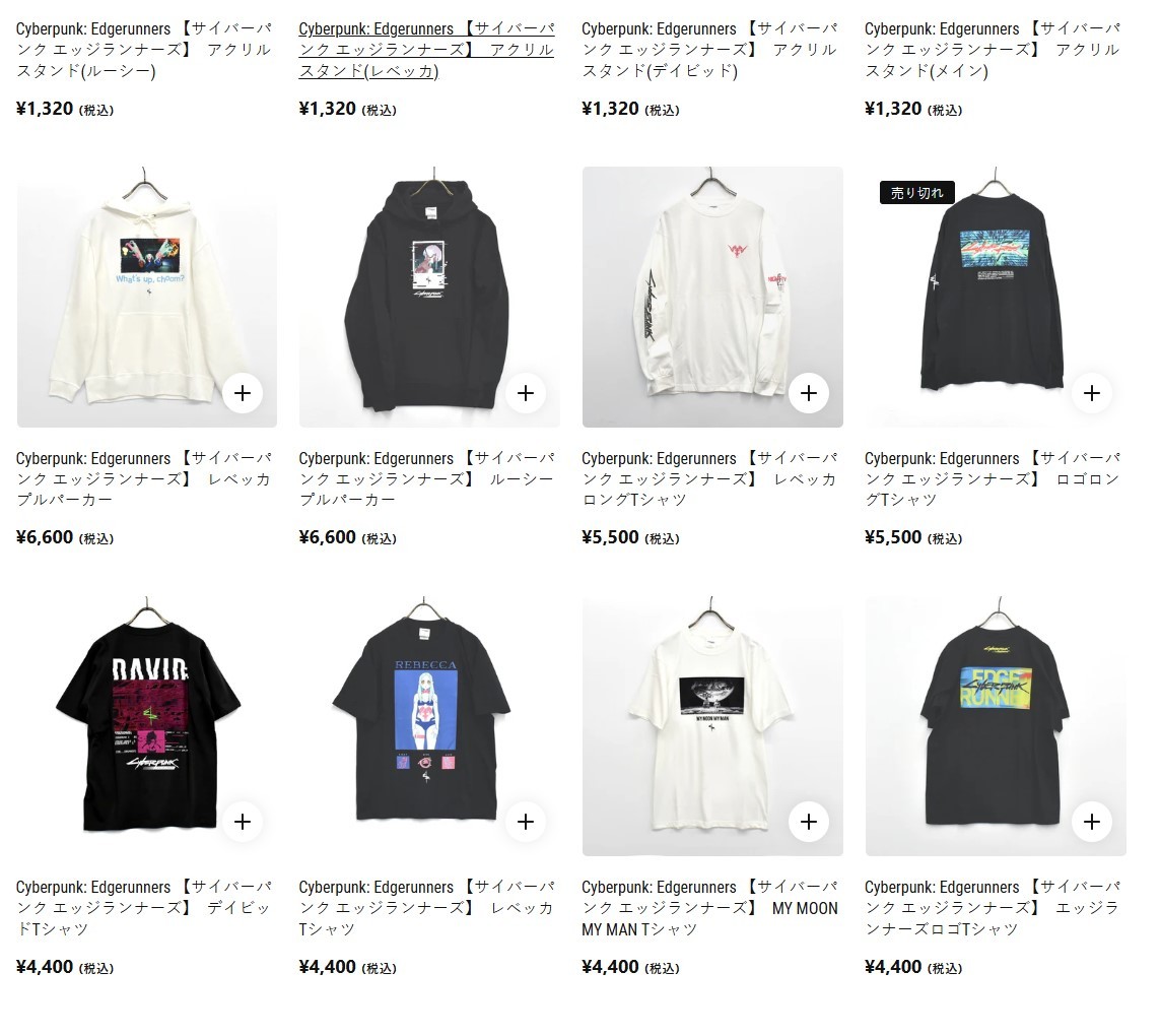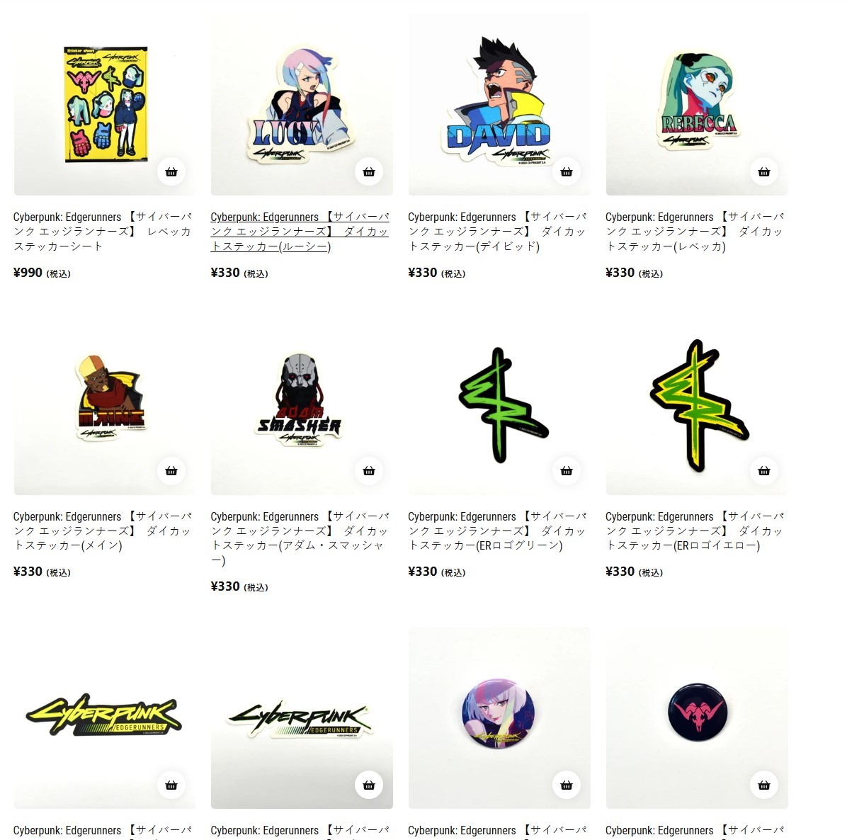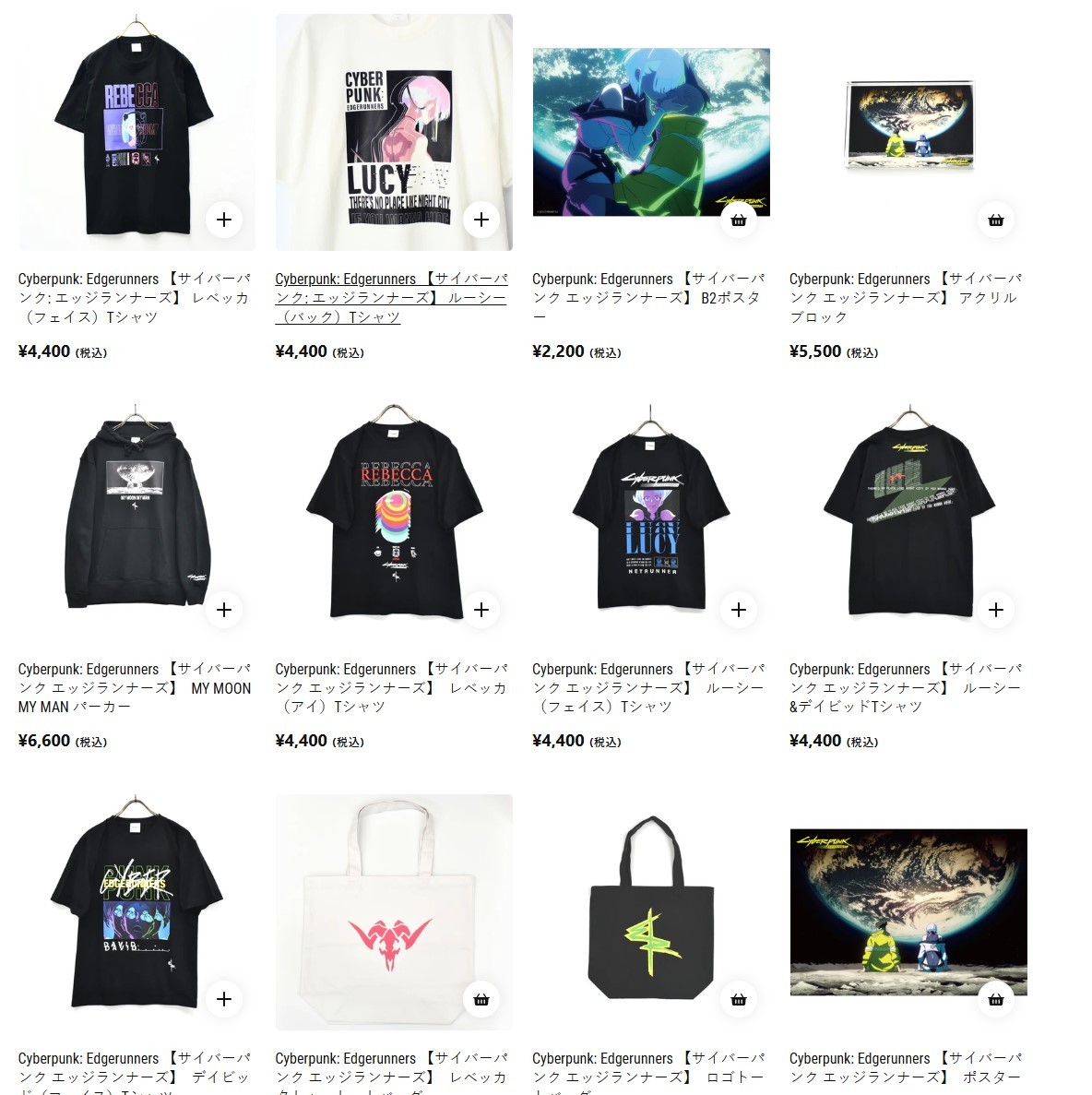 《賽博朋克:邊緣行者》商品:T恤、長袖T恤、夾克、貼紙、亞克力鑰匙扣、徽章、海報、連帽衫、挎包等。
