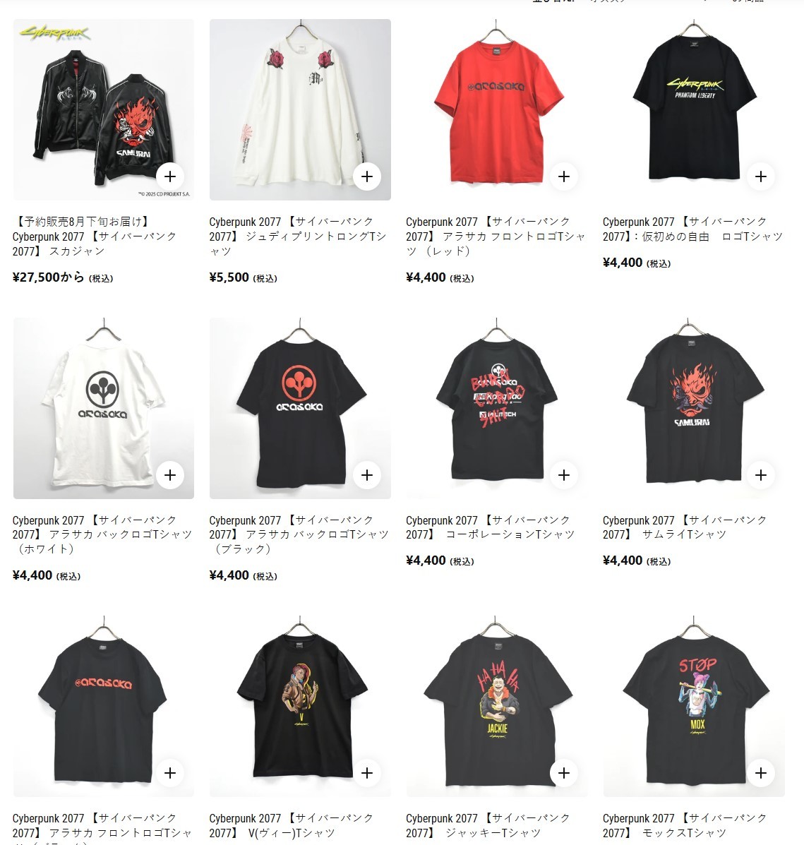 《賽博朋克:2077》商品:T恤、長袖T恤、夾克、貼紙、亞克力鑰匙扣、徽章、連帽衫、挎包等。
