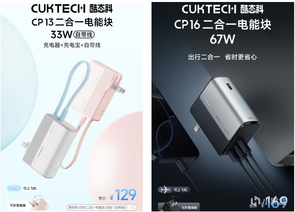 他们整了个新形态的东西。本来我并没打算整一个的,但每次出行,包里都得塞三样东西:酷态科6号充电宝、65W充电器和磁吸线。