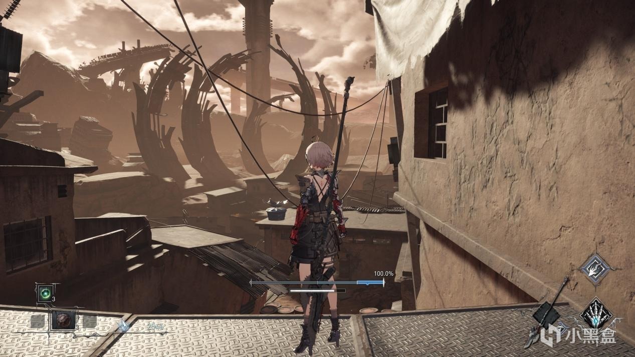 当然,和正统魂系游戏相比,《无限机兵》虽然融合了许多满即视感的类魂游戏要素,但在选择开发方向时,制作组显然没有打着“复刻黑魂”的目的来还原各种读指令粪怪和阴间跳跳乐,而是尽可能的将不同作品的优点整合在一起,最终做出了我们现在玩到的这款极其适合新手入坑的“更适合新手体质的黑魂”。
