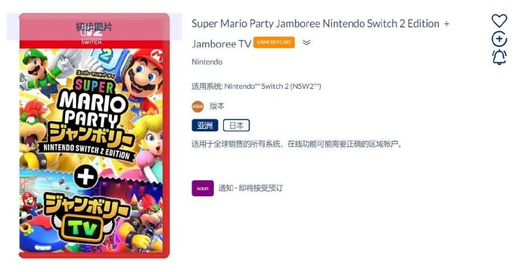 除了马里奥派对外,零售商play-asia上架的一系列Switch2游戏中,还列出了其他钥匙卡游戏: