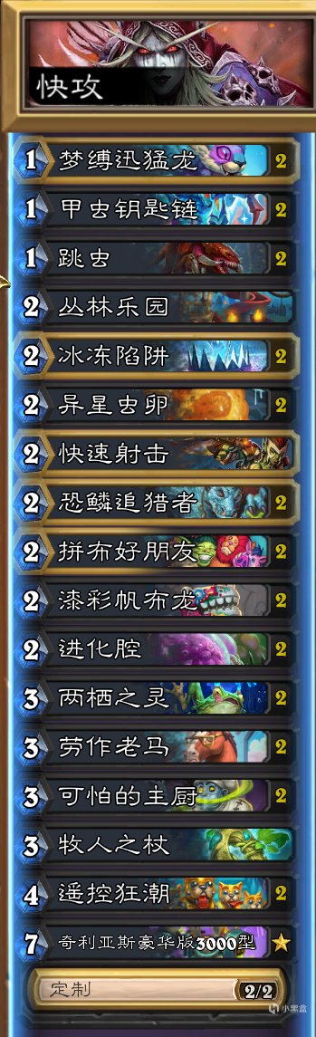 这套卡组应该是当前版本最能龟的卡组,控制强,回血高,可谓是快攻杀手!