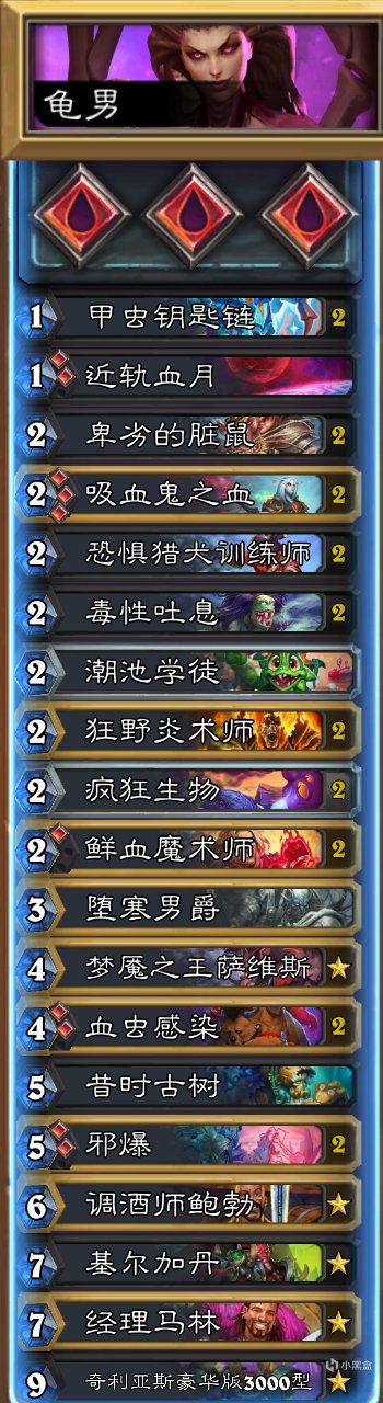 这次优化进去了学徒、吸血鬼之血、古树等卡,拥有更多解场和回血能力,极致的龟男!