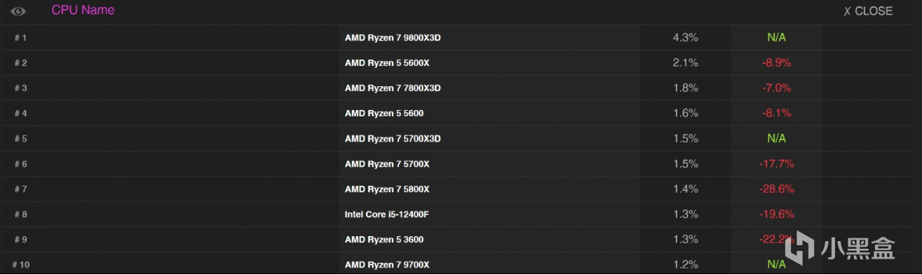 核心數量分佈方面,8核處理器以24.7%的佔比超越6核產品的22.5%,成爲最受歡迎配置。旗艦型號Ryzen 7 9800X3D登頂熱門處理器榜首,經典款Ryzen 5 5600X仍穩居次席。