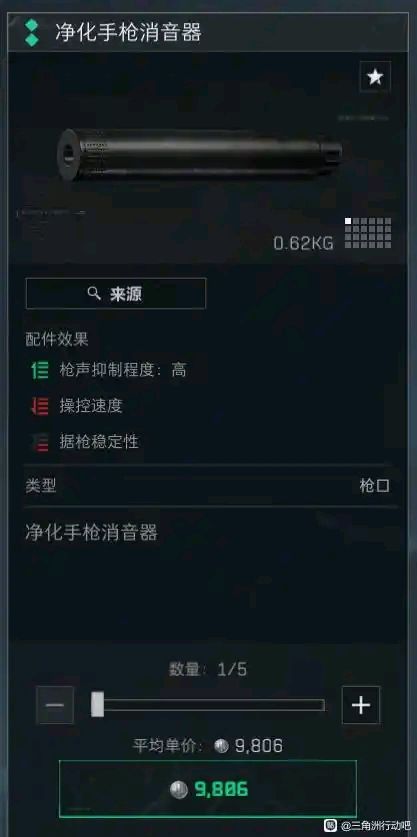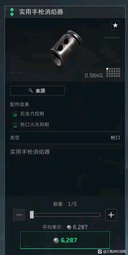 相當重要性價比相當高的的消焰器。主要是因爲手槍的槍口只有幾個,而且低價沒有負面效果能夠消焰的槍口僅此一個。尤其是配合g18可以說強度史詩級提升,下圖的gif就是加裝消焰器和沒有加裝消焰器的g18開火對比。