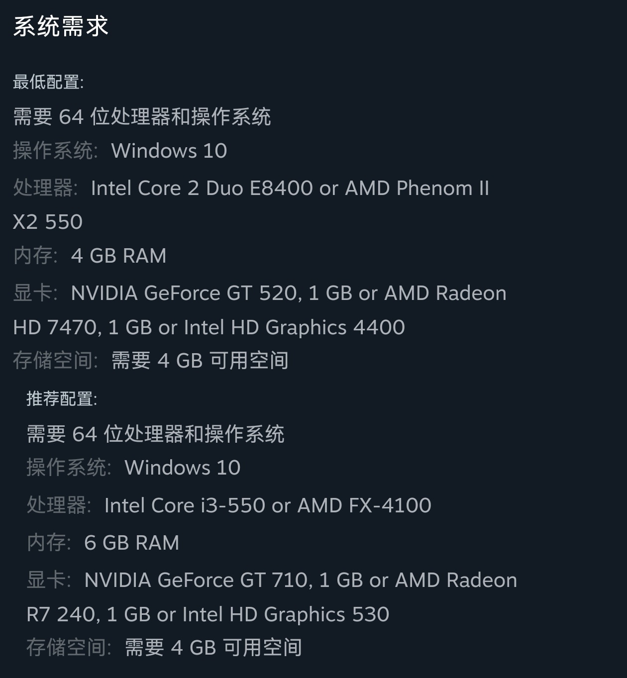 遊戲配置要求: