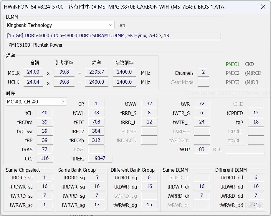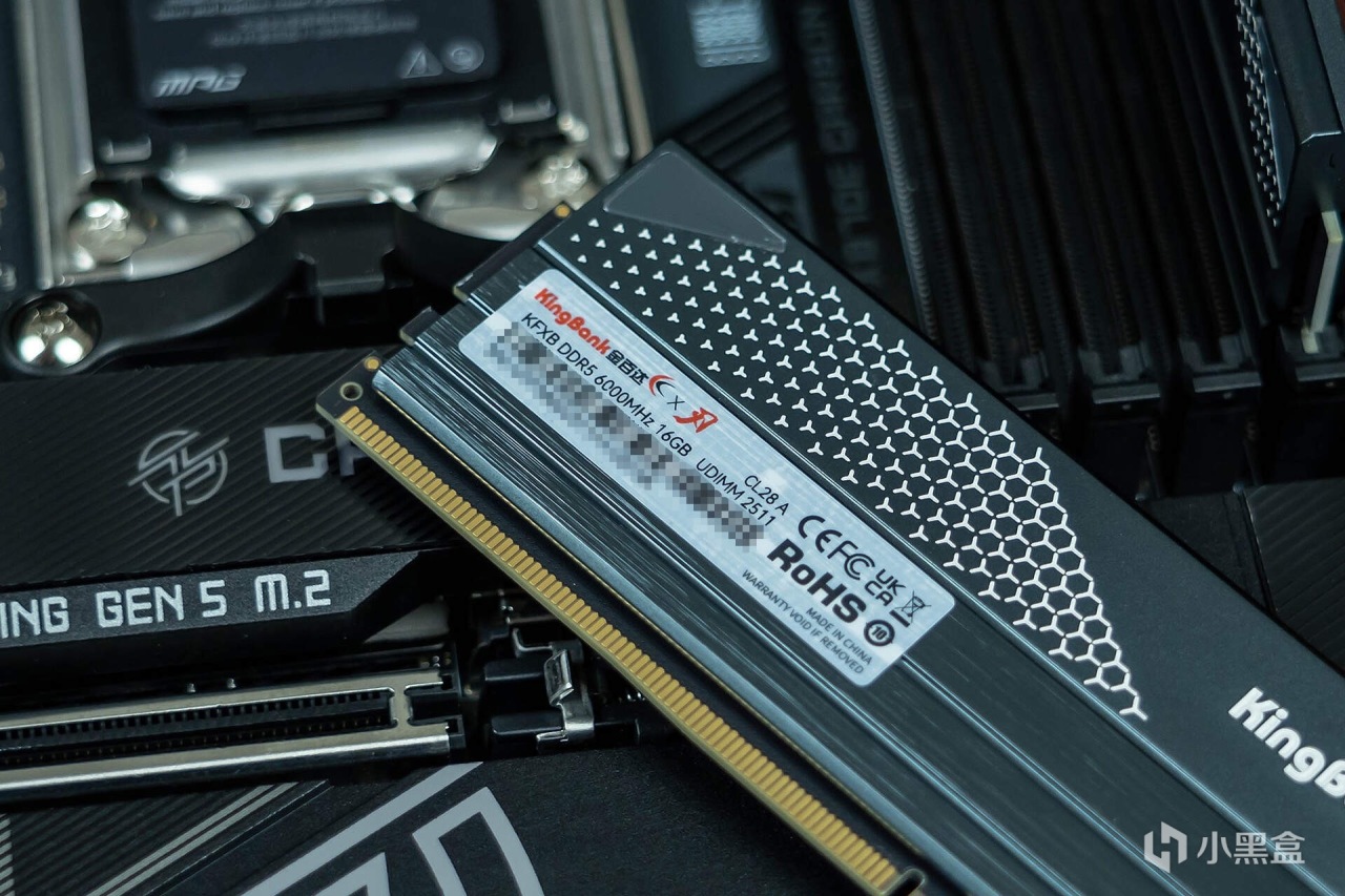內存超頻我用的是性價比很高的金百達星刃黑32GB(16GBX2) 6000MHz C28,配備2mm鋁合金散熱馬甲,表面有一半採用金屬拉絲工藝,另一半光面印有蜂巢散落漸隱絲印,質感十足,和微星 MPG X870E CARBON WIFI暗黑主板非常般配。