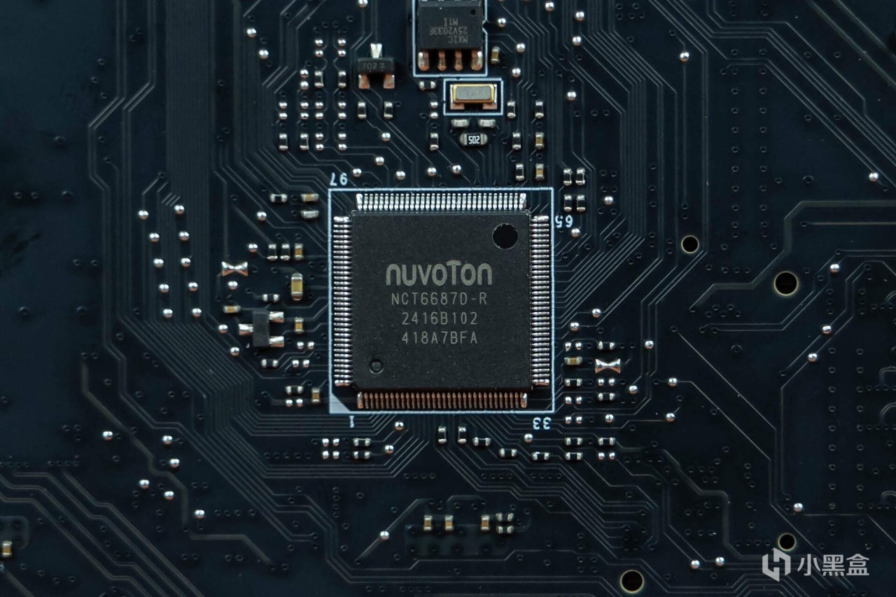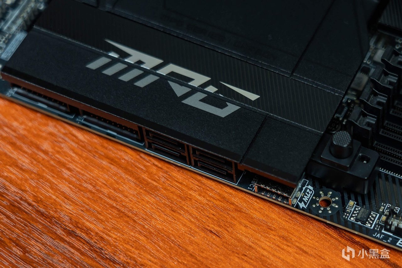 右下角的南橋芯片組散熱裝甲遮擋住了主板側面的硬盤接口和USB擴展接口,正面觀感更整潔統一。