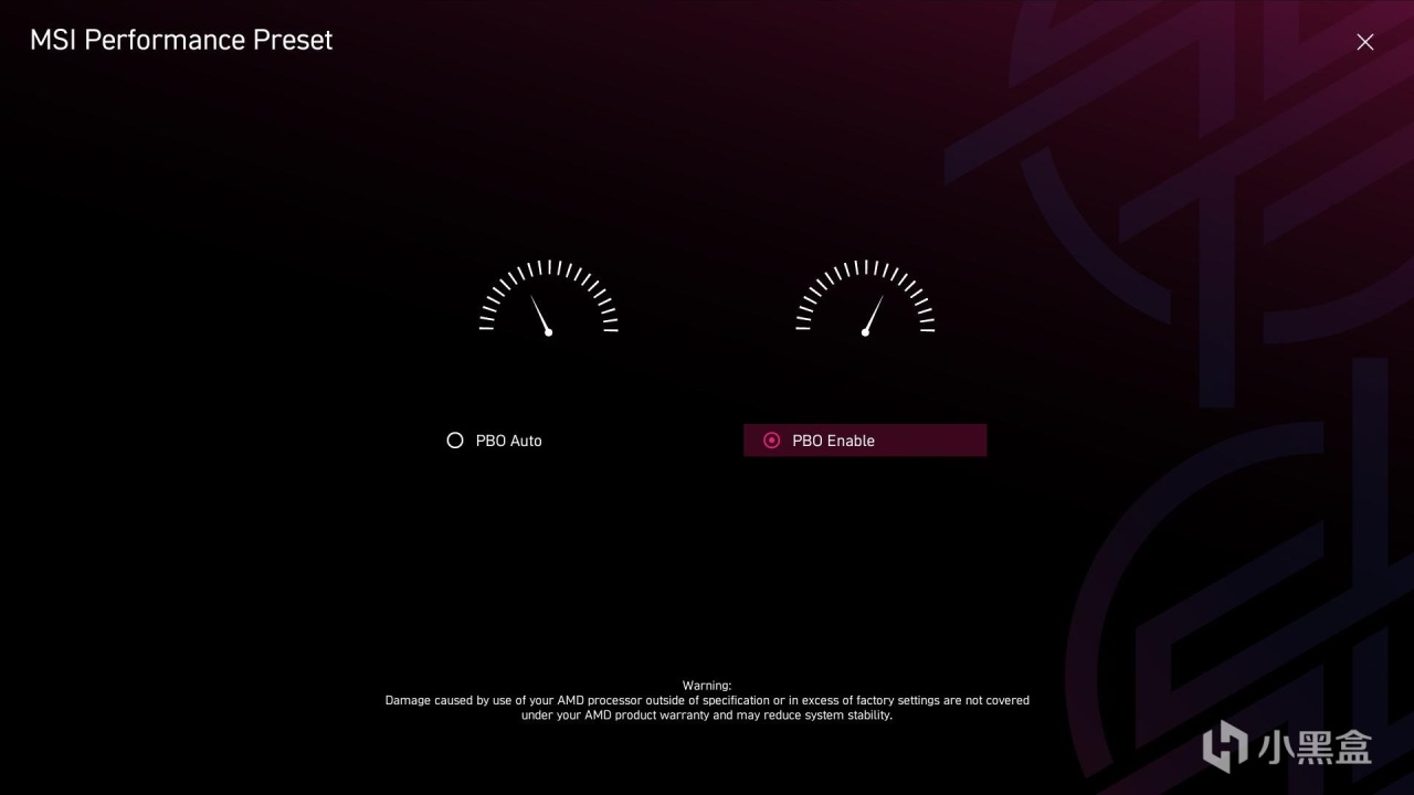 PBO選項分爲Enhanced Mode(增強模式)、Set Thermal Point(設定溫度上限)、Enhanced Mode Boost(加強版增強模式)三種模式8個檔位,其中,Set Thermal Point將CPU最高溫度設定在85°C、75°C和65°C,啓用該功能,CPu的溫度會被限制在設定的溫度點,CPU能以較低的電壓和溫度運行,但效能不會降低;Enhanced Mode Boost是更激進的增強模式,對硬件有更高要求,尤其CPU體質。