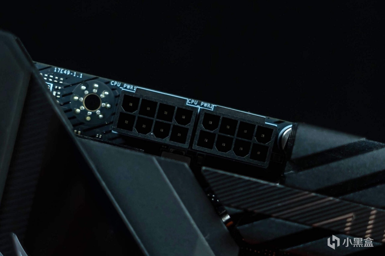 ▼ 左上角雙8pin供電接口,旁邊的螺絲孔周圍設置了雙重防靜電保護。