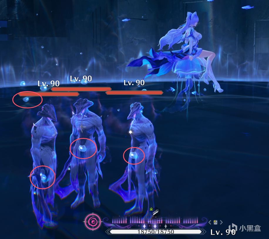 敵人身體表面會泛有明顯的藍色光芒,並且會持續"吐氣泡",如圖: