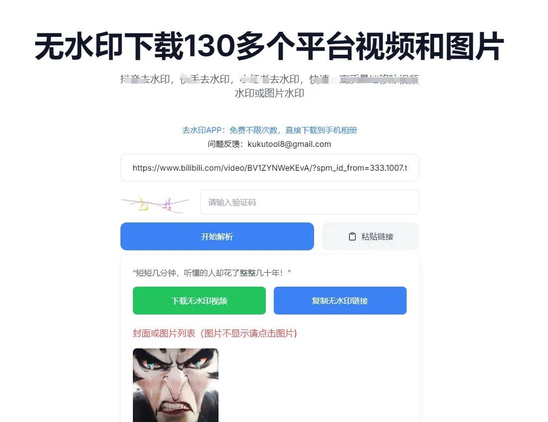 一個在線視頻下載工具。除了可以下載B站視頻,還支持多個視頻平臺,比如微博、秒拍、微視等。