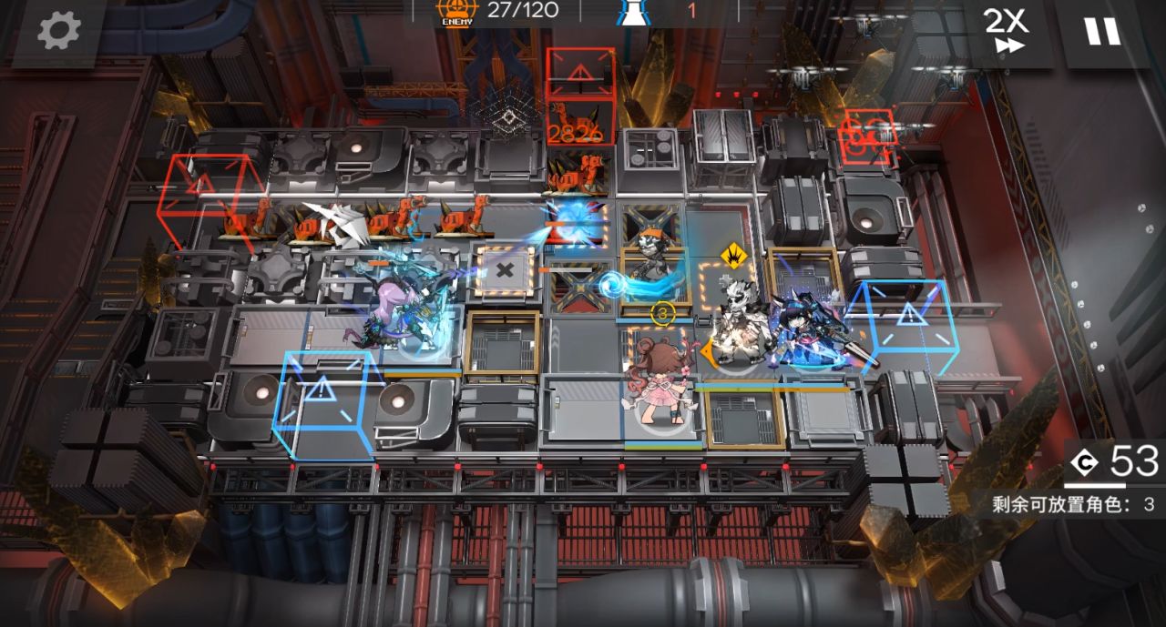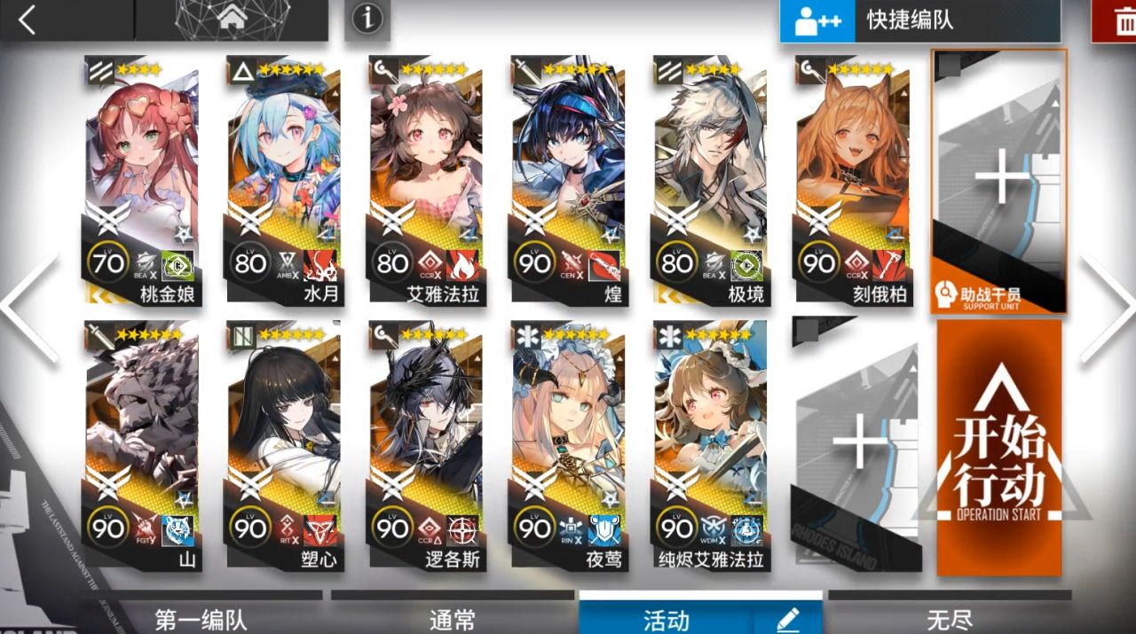 沙盤推演選1級右邊和2級右邊。開局煌朝左,山,提豐朝上,伊桑,小羊朝上。一定要帶羣攻打手,練度低的多帶人。後面的怪和蝗蟲一樣,密密麻麻來一片。小羊濺射,3個地面羣攻打手纔剛好打死