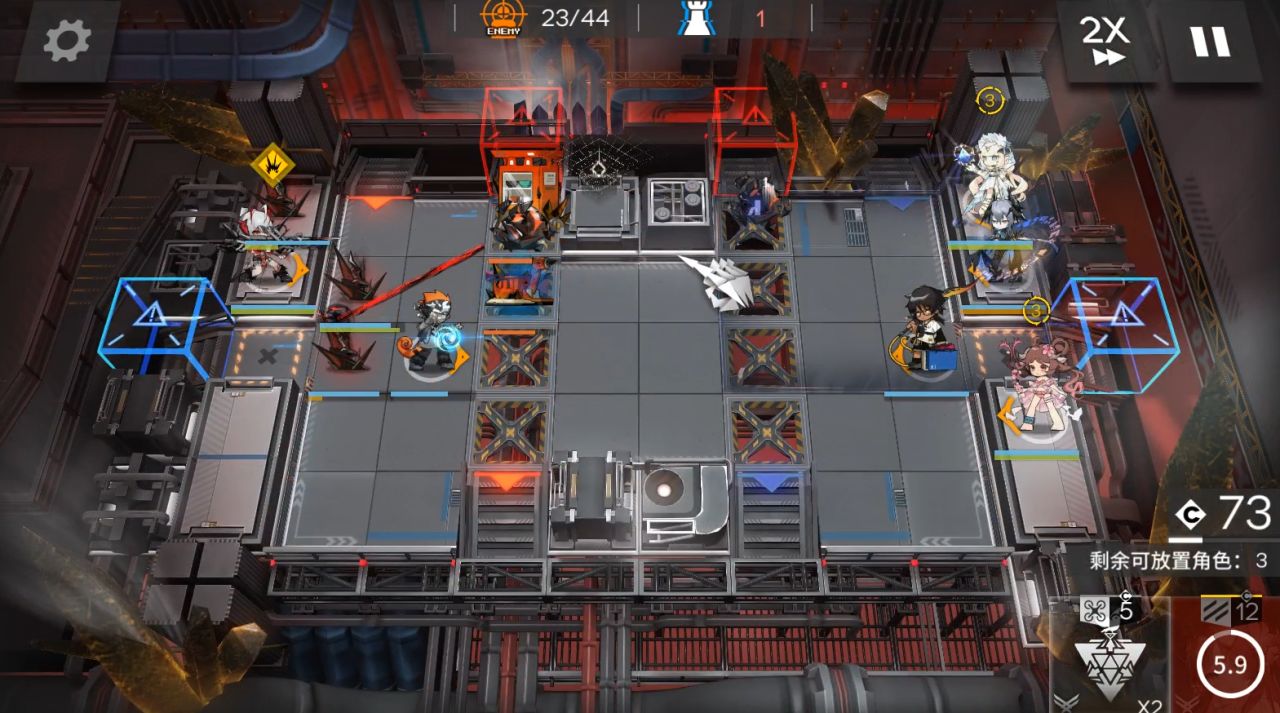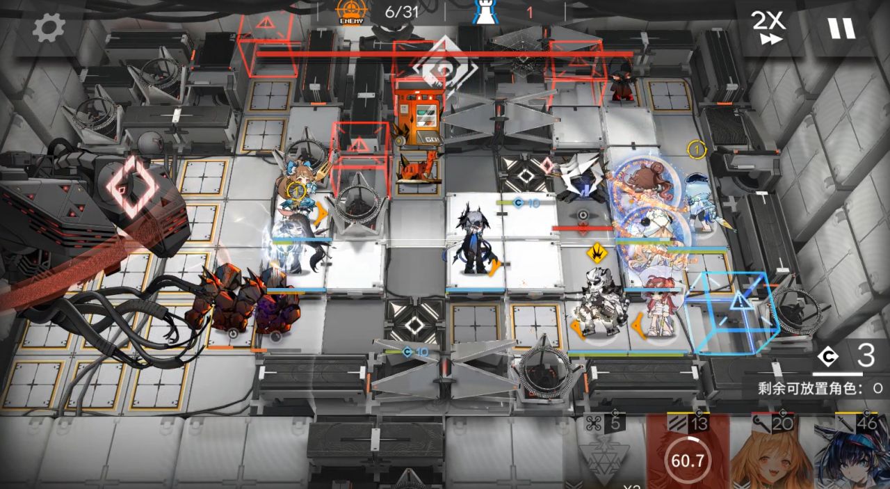 沙盤推演選1級左邊和2級左邊。依次部署山,棘刺朝左,夜鶯朝左,小羊朝左,伊桑朝上,最後小羊會掛掉,但棘刺伊桑能打死最後幾個小怪。