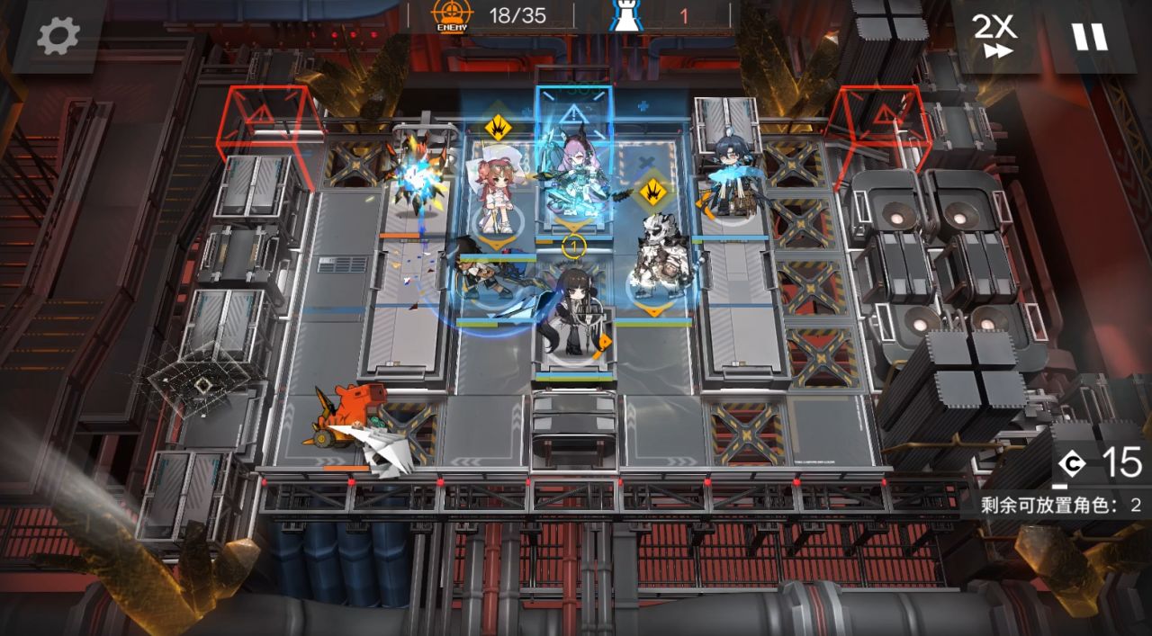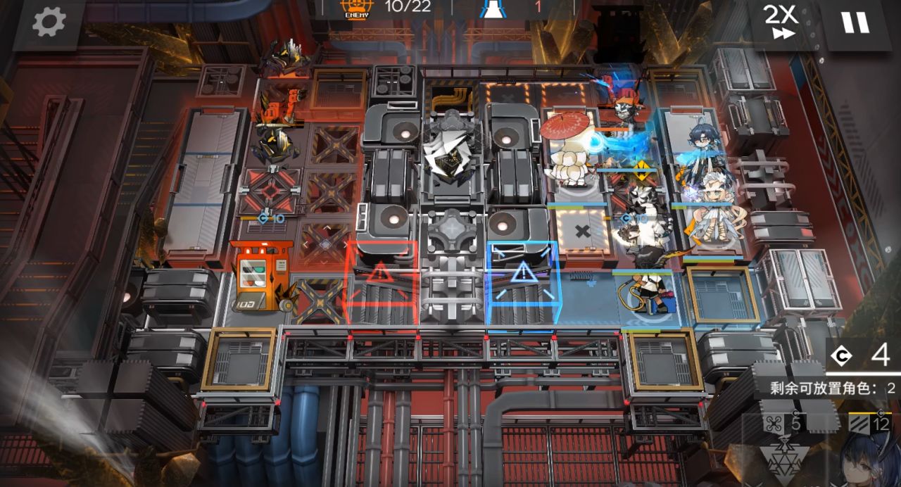 沙盤推演選1級左邊和2級左邊。流明塞雷亞練度要高,要奶住。流明帶的3技能。流明那邊有源石爆發的羣傷,醫療壓力較大、也可以使用奶羊更好。高臺鈴蘭和靈知減速石頭人讓真傷打死。依次部署先鋒,棘刺朝左,流明朝左,塑心朝下,夜鶯朝下,鈴蘭朝左,靈知朝左,塞雷亞,掛機即可。放塞雷亞的時候被敵人手牌封印了,剛好解封的時候有個怪在塞雷亞那格阻擋。