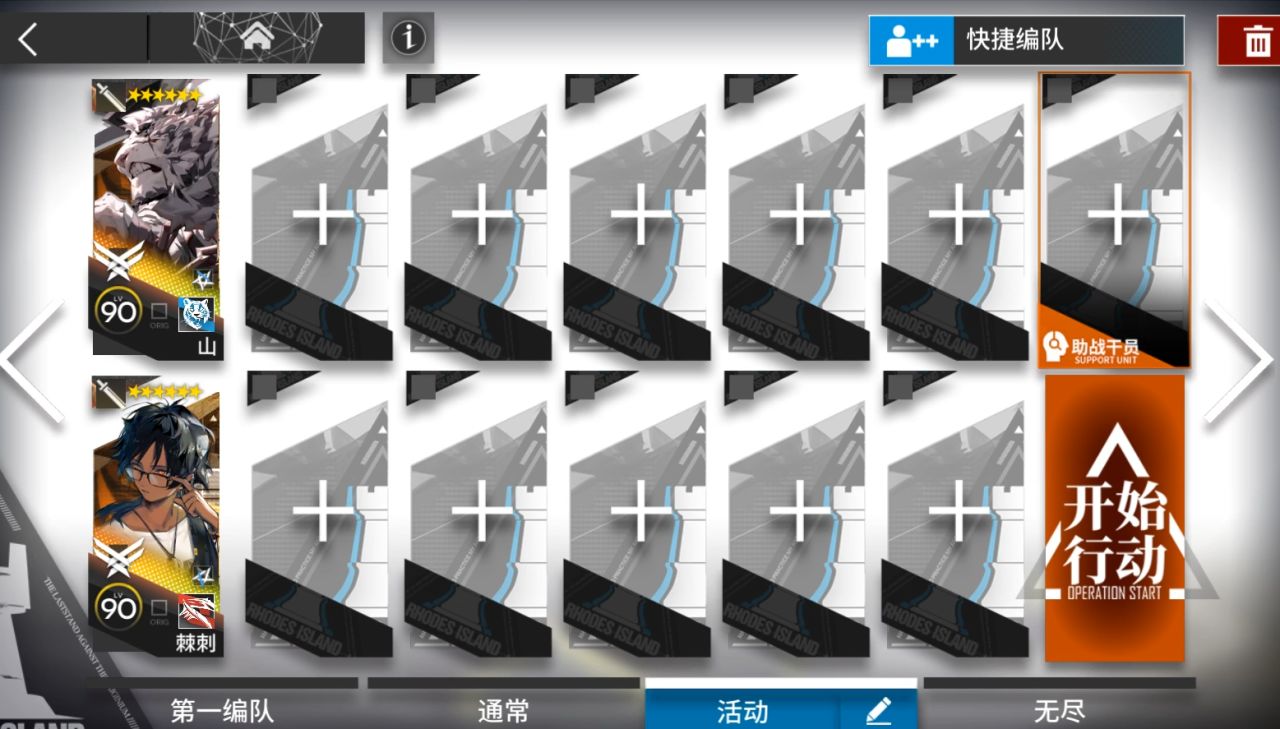 沙盤推演選1級左邊和2級右邊。注意開棘刺模組法傷打傷害,鈴蘭可換其他法傷幹員。帶個情報官部署1次即可,開局先鋒放在山的右下角一格朝上,爆費+打死小怪,打完直接撤退。部署山,伊桑朝下,棘刺朝上,流明朝左,鈴蘭朝上,夜鶯朝左掛機即可。主要注意醫療壓力。